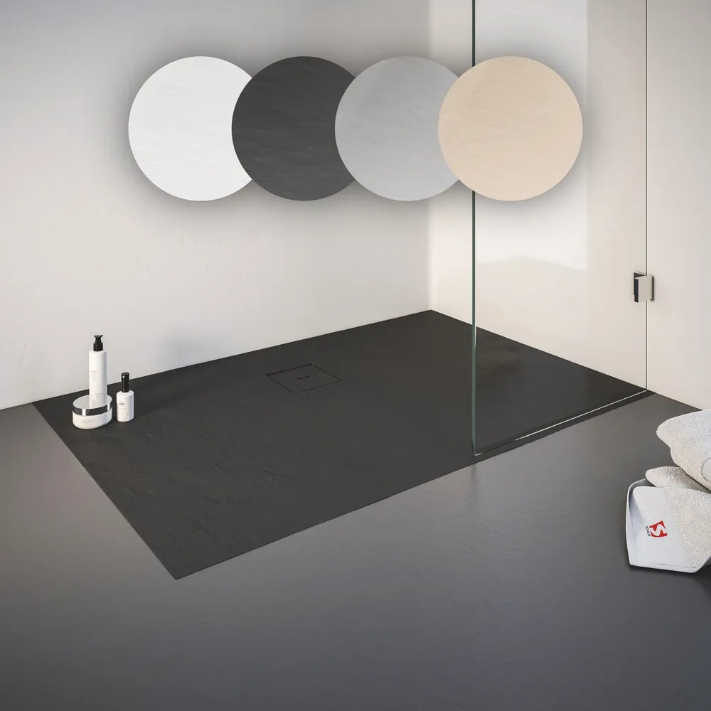 Duschwanne aus Mineralguss mit Steinstruktur - Rechteck, Anthrazit, 800x1400 mm