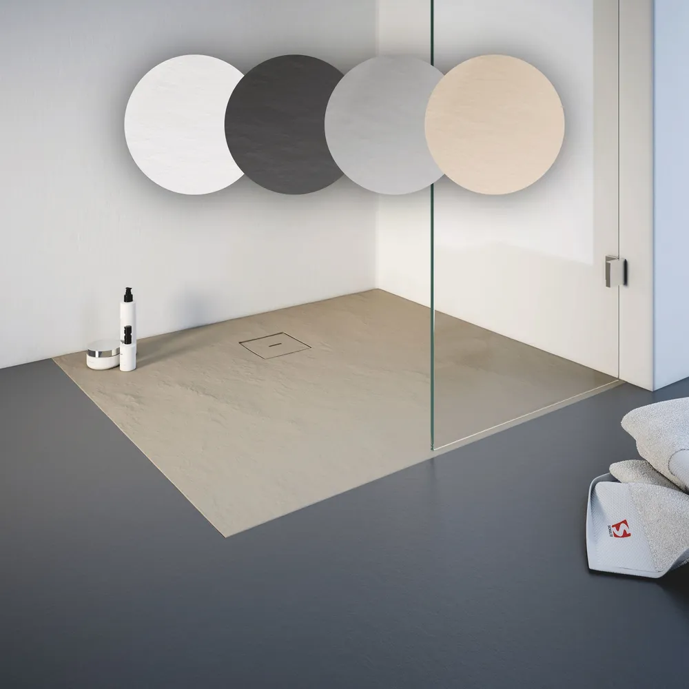 Duschwanne aus Mineralguss mit Steinstruktur - Rechteck, Sand, 900x1000 mm