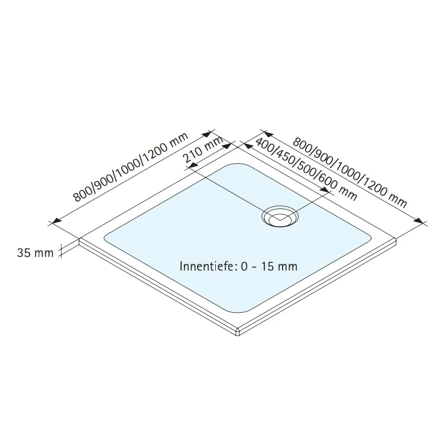 Duschwanne aus Mineralguss - Quadrat, Alpinweiß, 800x800 mm