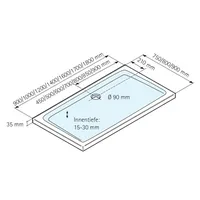 - Lieferumfang 1 x Duschwanne, 1 x Ablauf waagerecht (Ø 90 mm), 10 x Stellfüße
