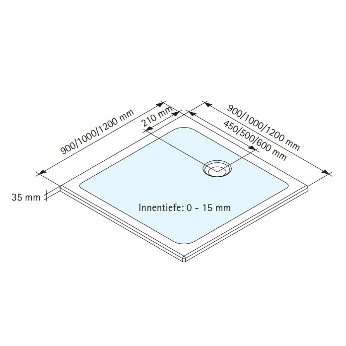 900 mm - Ablaufposition Mittig (kurze Seite)