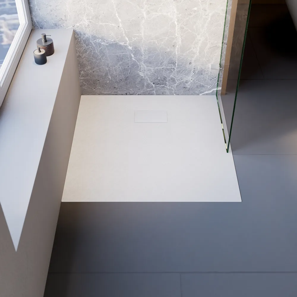 Duschwanne „DWM-Tec Midra“ mit Steinstruktur - Quadrat, Mattweiß, 900x900 mm