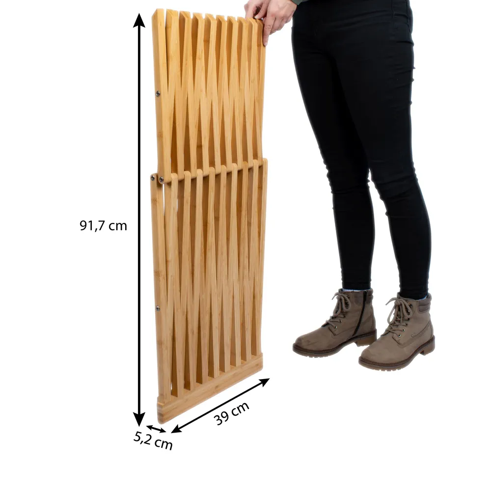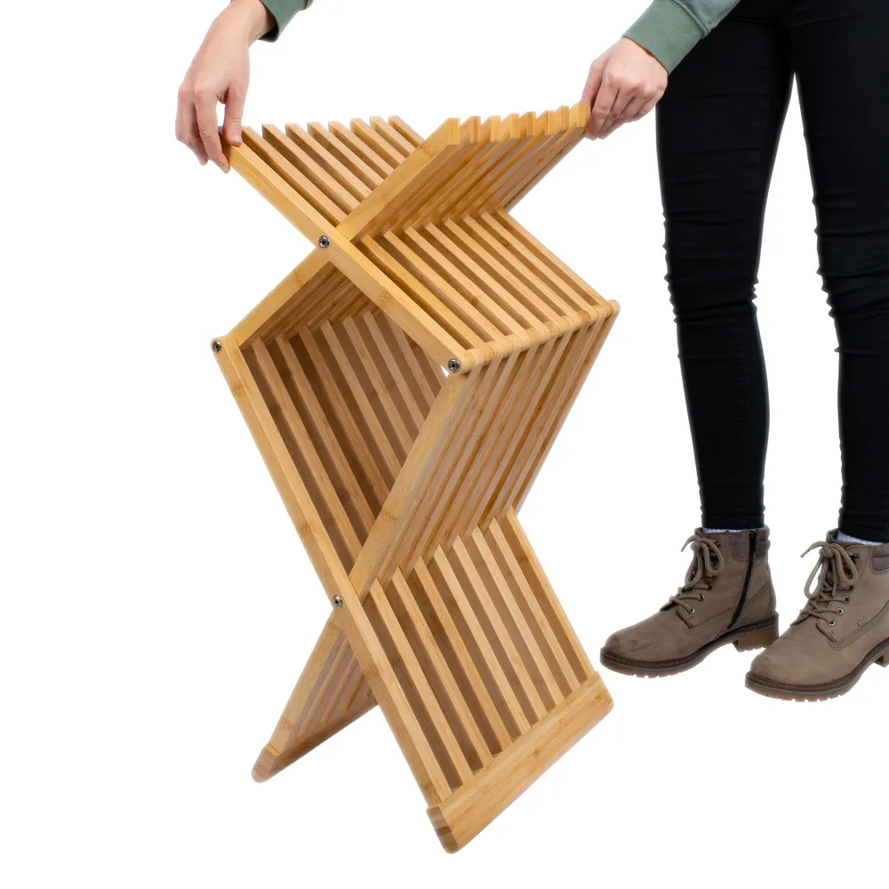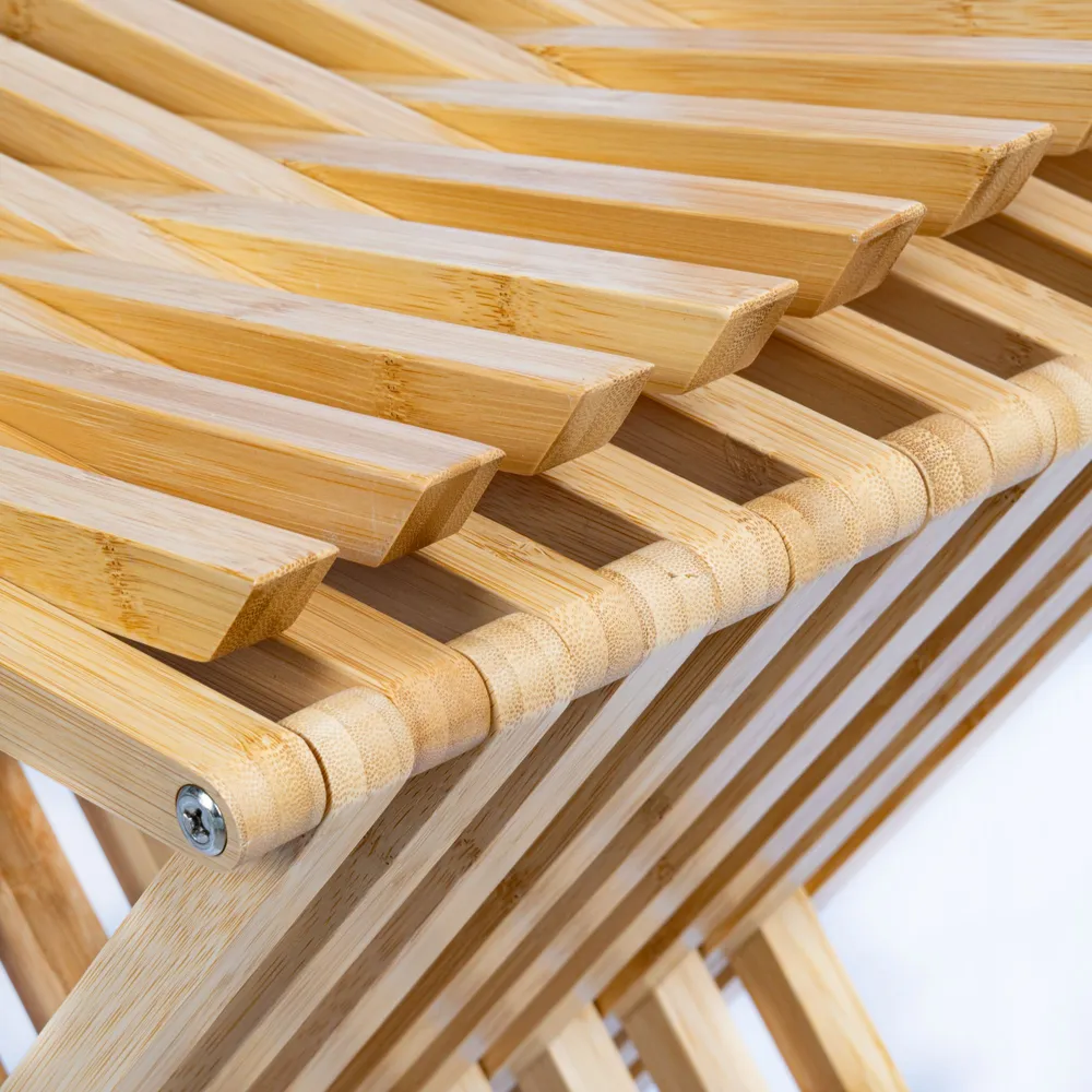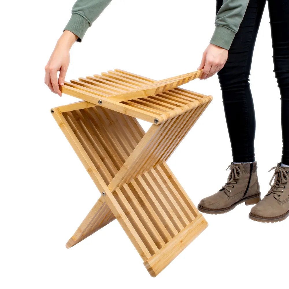 Unser klappbarer Badhocker aus Bambus eignet sich hervorragend als flexibel aufstellbare Ablage und Sitzgelegenheit im Bad, welche bei Bedarf einfach zusammengeklappt und an die Seite gestellt werden kann. Zeitgleich bereichert der moderne Look des Trendmaterials jedes Bad dekorativ.