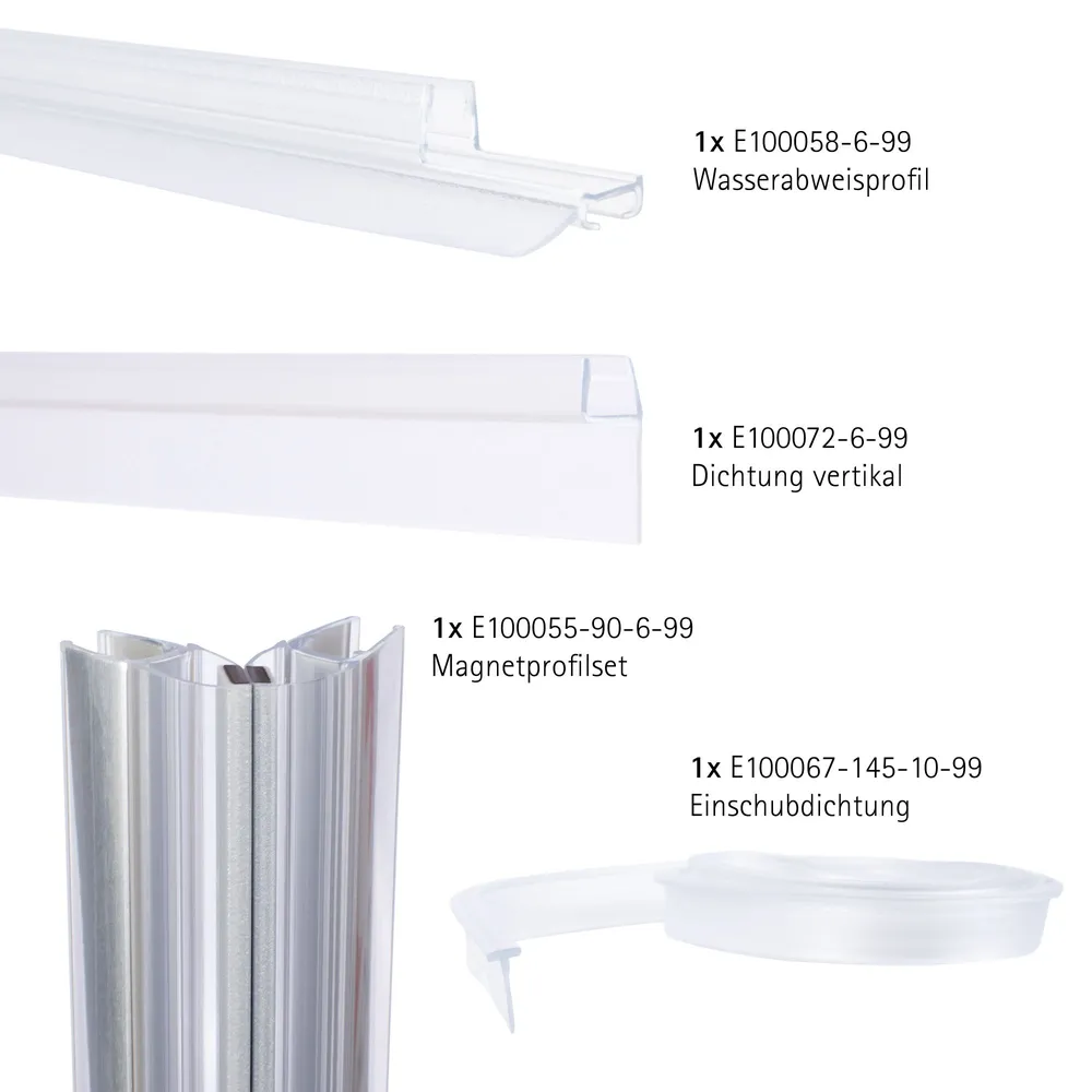 Dichtungssatz für 6 mm Drehtür an Nebenteil mit Seitenwand