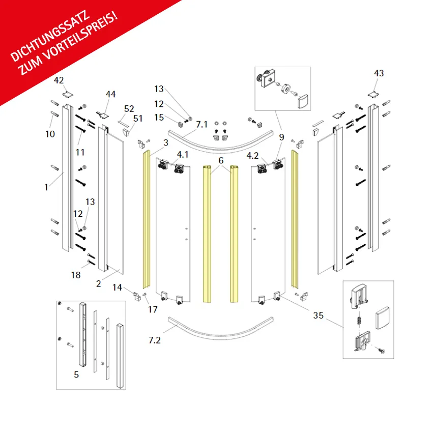 Dichtungssatz für 6 mm Runddusche II mit Schiebetüren
