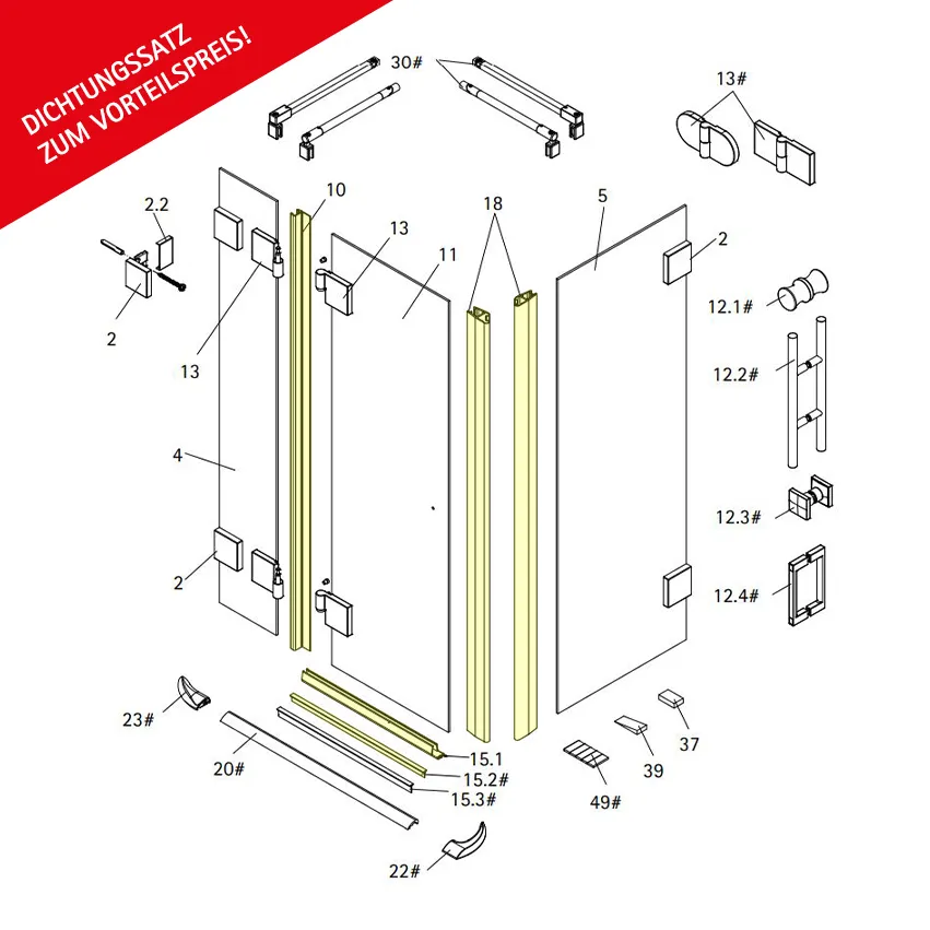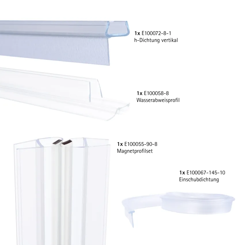 Dichtungssatz für 8 mm Drehtür an Nebenteil inkl. Seitenwand