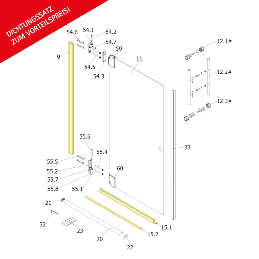 Dichtungssatz für 8 mm Drehtür D1 pendelbar in Nische