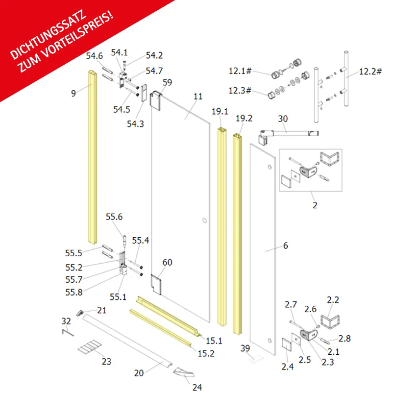 Dichtungssatz für Drehtür D1 pendelbar mit Nebenteil