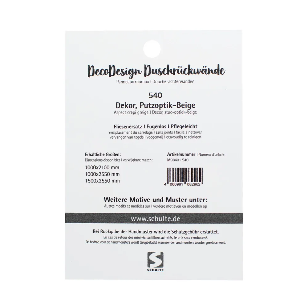 Unsere hochwertigen Duschrückwand-Muster helfen Ihnen, Farbe, Dekor und Oberfläche Ihrer zukünftigen Duschrückwand realistisch zu erleben. Wählen Sie aus glänzend, hochglänzend, matt, 3D-strukturiert oder Softtouch – und sehen Sie originalgetreu, wie das Material in Ihrem Badezimmer wirken wird. Ideal, um vor der Bestellung die passende Duschrückwand-Optik zu finden – ob für eine moderne, elegante oder individuelle Badgestaltung.