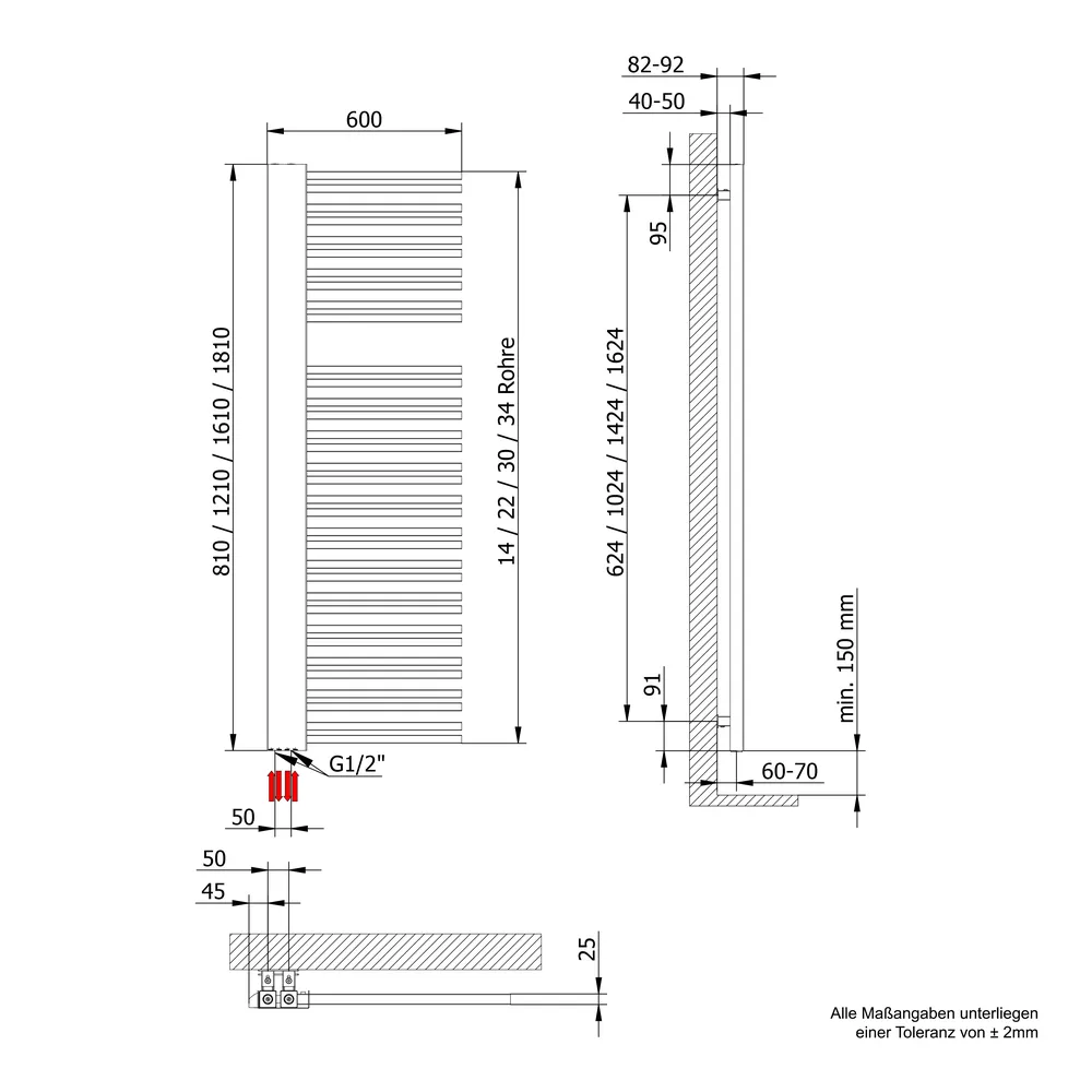 • Heizkörper sind für die Installation an massiven Wänden bestimmt. Bei einer anderen Verwendung ist bauseitig für eine entsprechende stabile Unterkonstruktion zu sorgen.