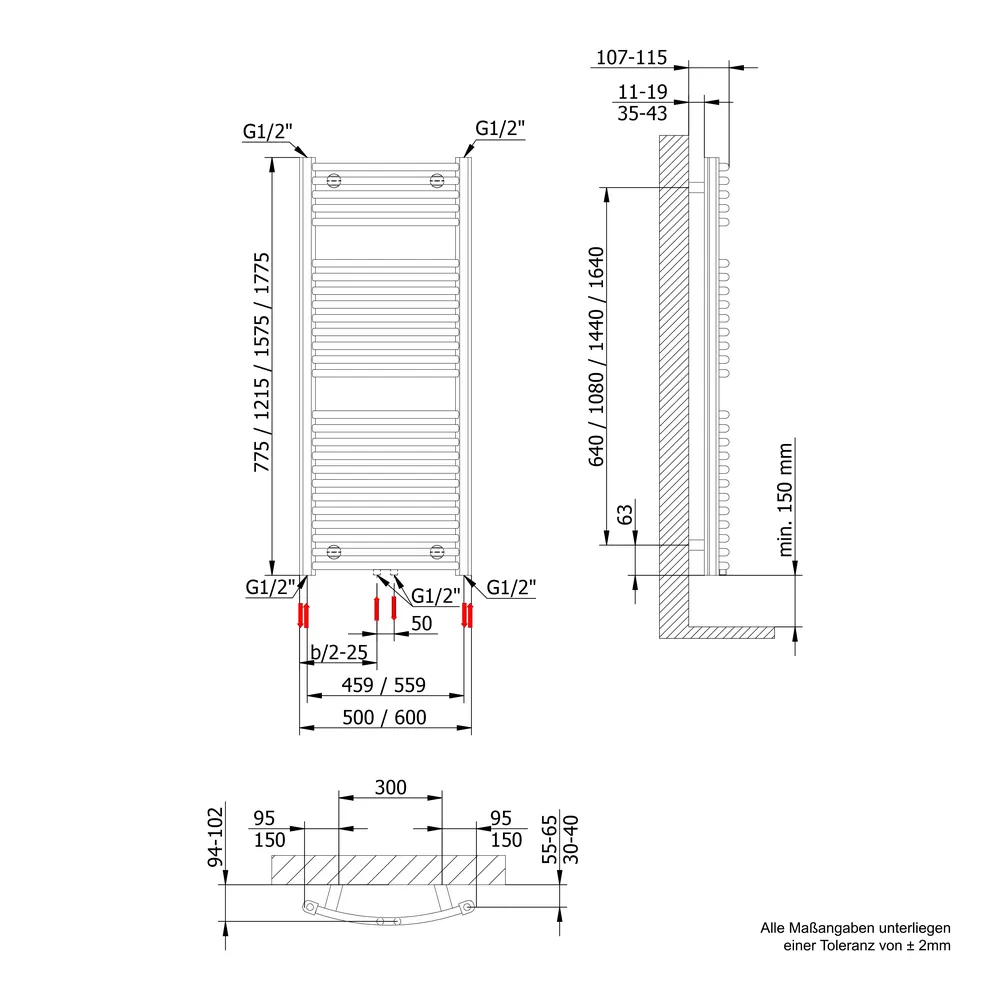• Heizkörper sind für die Installation an massiven Wänden bestimmt. Bei einer anderen Verwendung ist bauseitig für eine entsprechende stabile Unterkonstruktion zu sorgen.