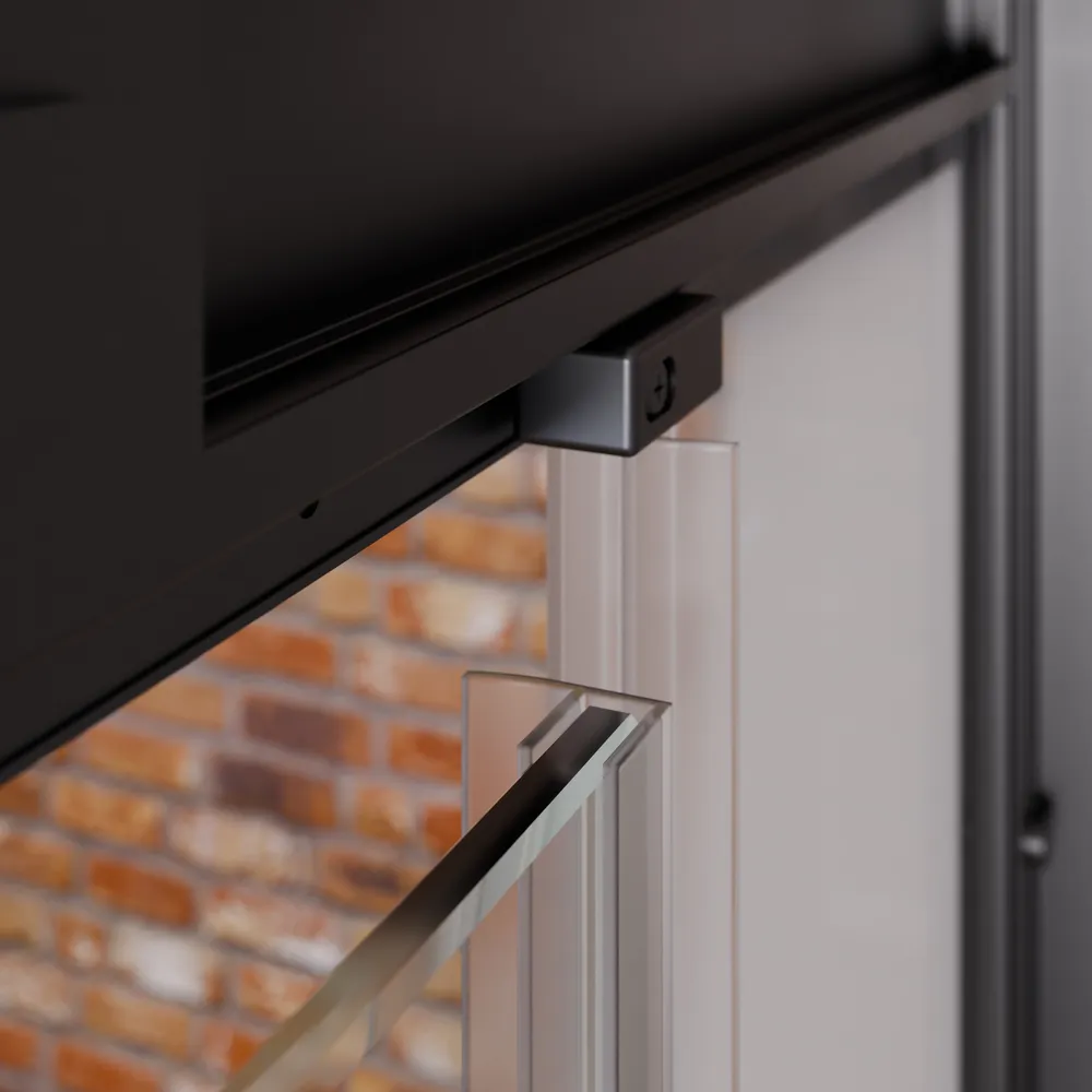 - 1 Drehpunkttür mit 2 Seitenwänden als U-Kabine